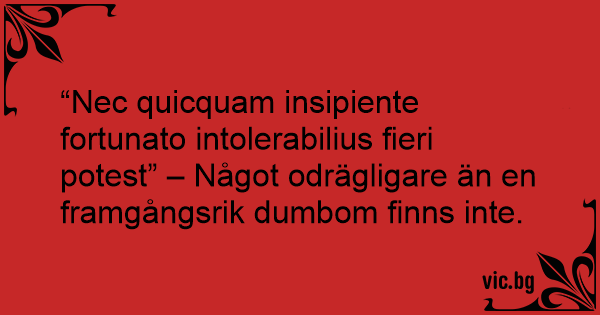 “Nec quicquam insipiente fortunato intolerabilius fieri potest” – Något odrägligare än en framgångsrik dumbom finns inte.