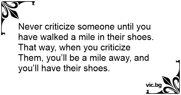 Never criticize someone until you have walked a mile in their shoes. That way, when you criticize