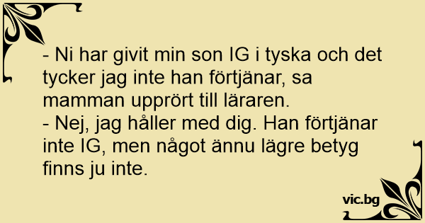 - Ni har givit min son IG i tyska och det tycker jag inte han förtjänar, sa mamman upprört till läraren.