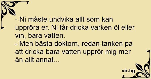 - Men bästa doktorn, redan tanken på att dricka bara vatten upprör mig mer än allt annat...
