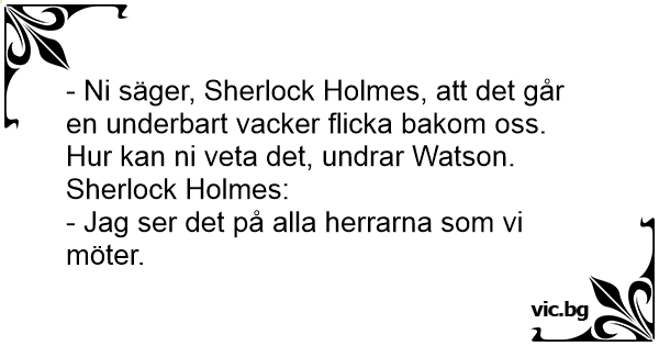 - Ni säger, Sherlock Holmes, att det går en underbart vacker flicka bakom oss. Hur kan ni veta det, undrar Watson.