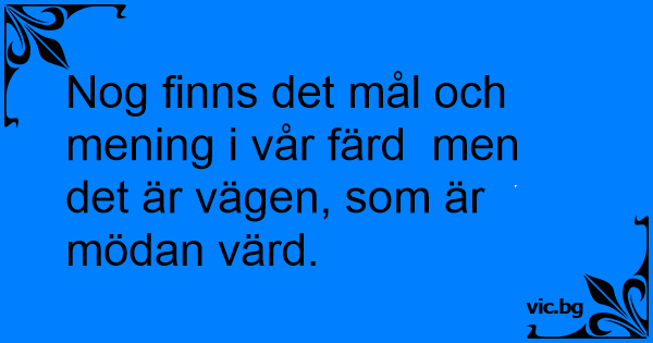 Nog finns det mål och mening i vår färd men det är vägen, som är mödan värd.