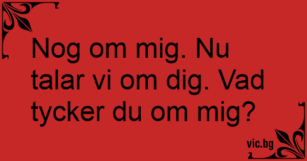 Nog om mig. Nu talar vi om dig. Vad tycker du om mig?