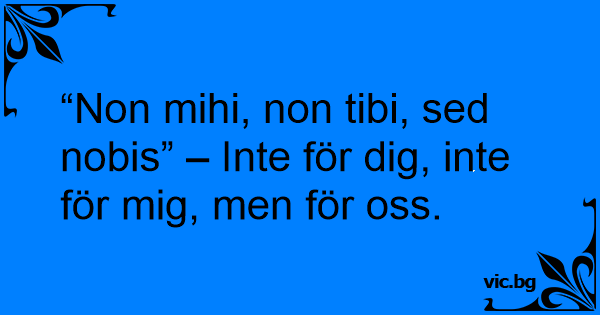 “Non mihi, non tibi, sed nobis” – Inte för dig, inte för mig, men för oss.