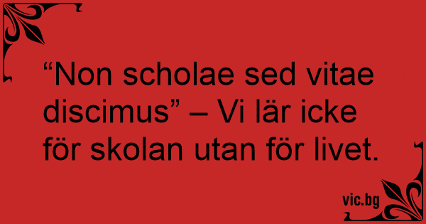 “Non scholae sed vitae discimus” – Vi lär icke för skolan utan för livet.