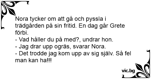 Nora tycker om att gå och pyssla i trädgården på sin fritid. En dag går Grete förbi.