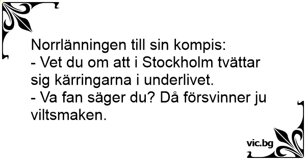 - Vet du om att i Stockholm tvättar sig kärringarna i underlivet.