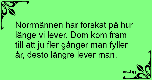 Norrmännen har forskat på hur länge vi lever. Dom kom fram till att ju fler gånger man fyller år, desto längre lever man.