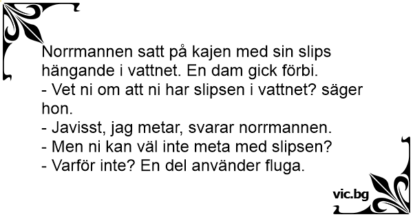 Norrmannen satt på kajen med sin slips hängande i vattnet. En dam gick förbi.