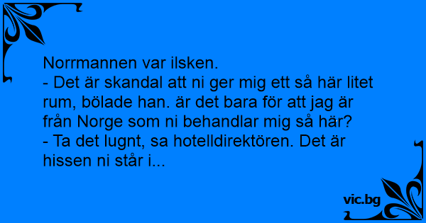 - Det är skandal att ni ger mig ett så här litet ruм, bölade han. är det bara för att jag är från Norge som ni behandlar mig så här?