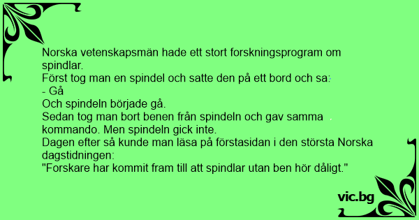 "Forskare har kommit fram till att spindlar utan ben hör dåligt."