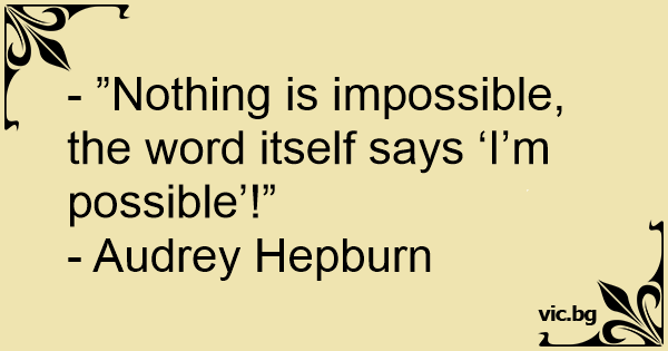 - ”Nothing is impossible, the word itself says ‘I’m possible’!”