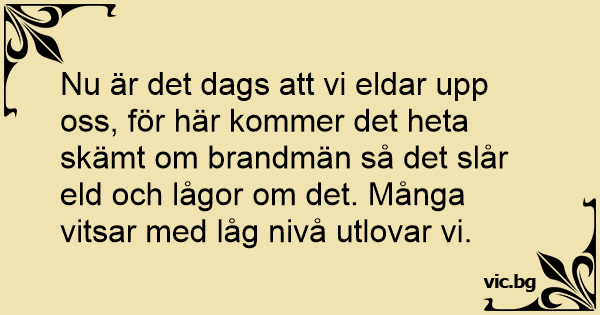 Nu är det dags att vi eldar upp oss, för här kommer det heta skämt om brandmän så det slår eld och lågor om det. Många vitsar med låg nivå utlovar vi.