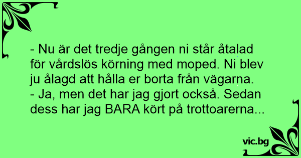 - Nu är det tredje gången ni står åtalad för vårdslös körning med moped. Ni blev ju ålagd att hålla er borta från vägarna.