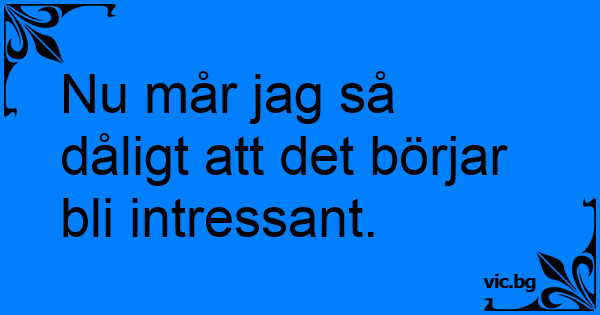 Nu mår jag så dåligt att det börjar bli intressant.