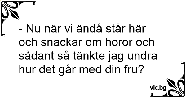 - Nu när vi ändå står här och snackar om horor och sådant så tänkte jag undra hur det går med din fru?
