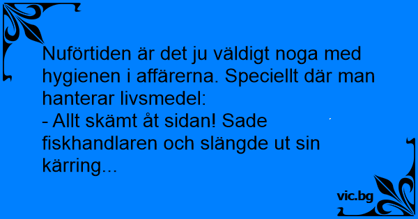 - Allt skämt åt sidan! Sade fiskhandlaren och slängde ut sin kärring...