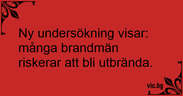 Български English Deutsch Español Русский Français Italiano Ελληνικά Македонски Türkçe Українська Português Polski Ny undersökning visar: många brandmän riskerar att bli utbrända. Nederlands Dansk Norsk Suomi Magyar Româna Čeština Lietuvių Latviešu Hrvatski