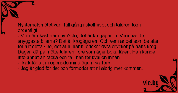 Dagen därpå mötte talaren Tore som äger bokaffären. Han kunde inte annat än tacka och ta i han för kvällen innan.