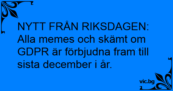 NYTT FRÅN RIKSDAGEN: Alla memes och skämt om GDPR är förbjudna fram till sista december i år.