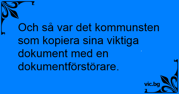 Och så var det kommunsten som kopiera sina viktiga dokument med en dokumentförstörare.