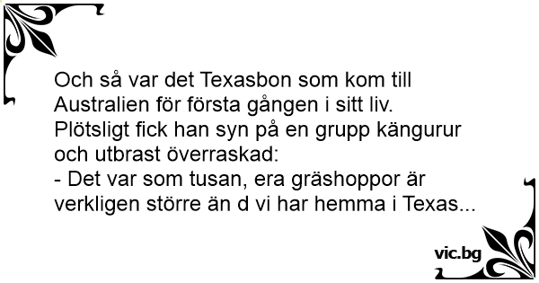 - Det var som tusan, era gräshoppor är verkligen större än d vi har hemma i Texas...