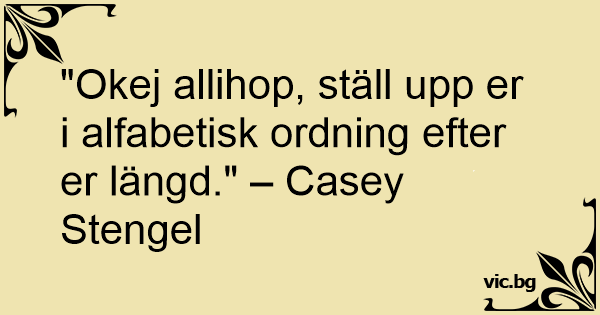 "Okej allihop, ställ upp er i alfabetisk ordning efter er längd." – Casey Stengel