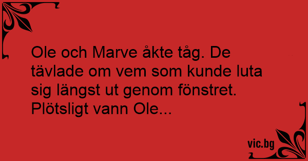 Ole och Marve åkte tåg. De tävlade om vem som kunde luta sig längst ut genom fönstret. Plötsligt vann Ole...
