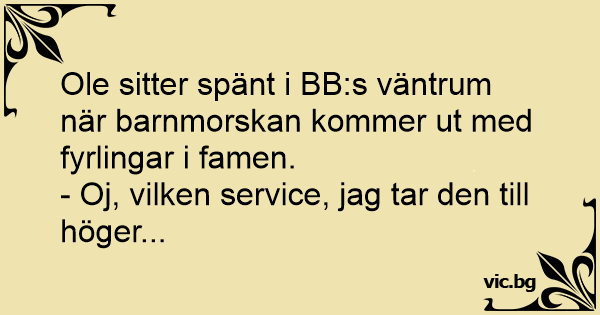 Ole sitter spänt i BB:s väntrum när barnmorskan kommer ut med fyrlingar i famen.