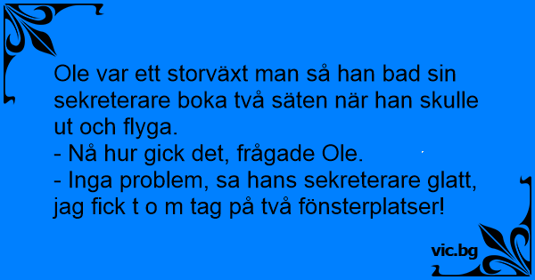 Ole var ett storväxt man så han bad sin sekreterare boka två säten när han skulle ut och flyga.