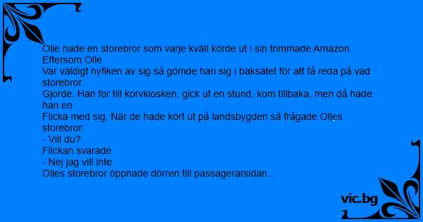 Olle hade en storebror som varje kväll körde ut i sin trimmade Amazon. Eftersom Olle