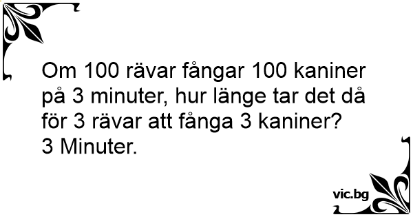 Om 100 rävar fångar 100 kaniner på 3 minuter, hur länge tar det då för 3 rävar att fånga 3 kaniner?