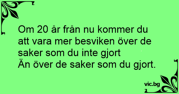 Om 20 år från nu kommer du att vara mer besviken över de saker som du inte gjort