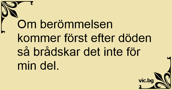 Om berömmelsen kommer först efter döden så brådskar det inte för min del.