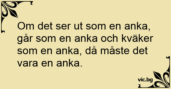 Om det ser ut som en anka, går som en anka och kväker som en anka, då måste det vara en anka. 77 0 0 Roliga citat
