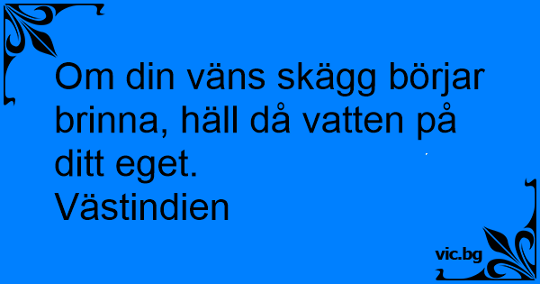 Om din väns skägg börjar brinna, häll då vatten på ditt eget.