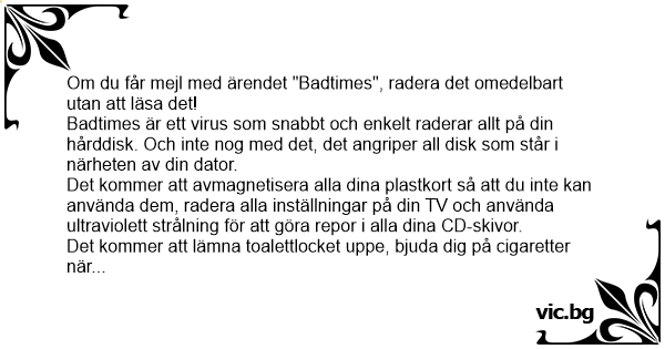Om du får mejl med ärendet "Badtimes", radera det omedelbart utan att läsa det!