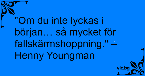 "Om du inte lyckas i början… så mycket för fallskärmshoppning." – Henny Youngman