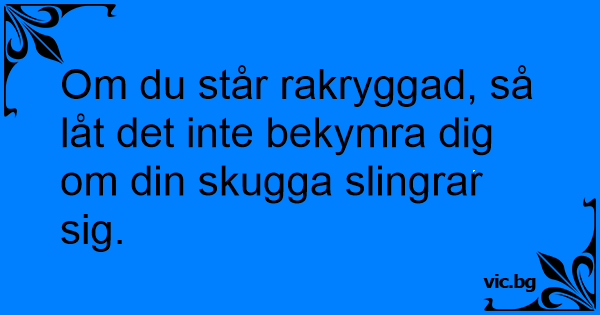 Om du står rakryggad, så låt det inte bekymra dig om din skugga slingrar sig.