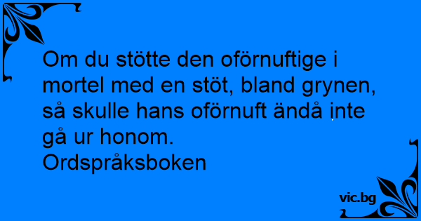 Om du stötte den oförnuftige i mortel med en stöt, bland grynen, så skulle hans oförnuft ändå inte gå ur honom. Ordspråksboken