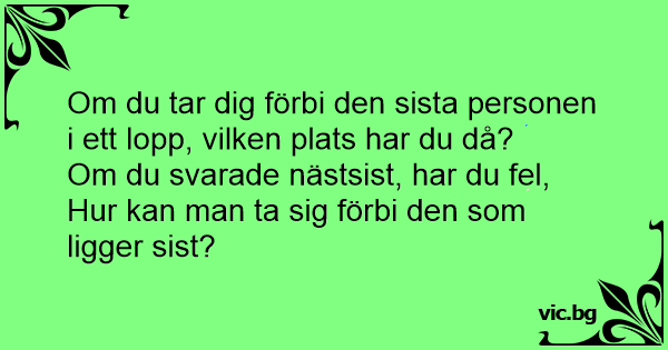 Om du tar dig förbi den sista personen i ett lopp, vilken plats har du då?