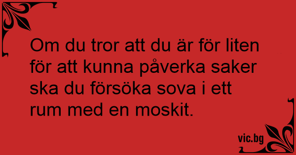 Om du tror att du är för liten för att kunna påverka saker ska du försöka sova i ett ruм med en moskit.