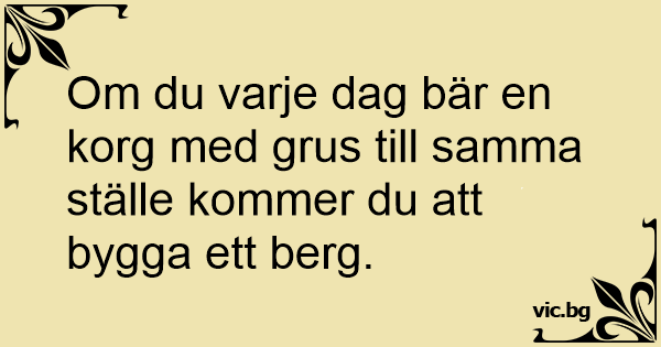 Om du varje dag bär en korg med grus till samma ställe kommer du att bygga ett berg.