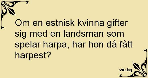 Om en estnisk kvinna gifter sig med en landsman som spelar harpa, har hon då fått harpest?