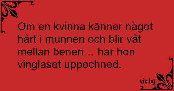 Om en kvinna känner något hårt i munnen och blir våt mellan benen… har hon vinglaset uppochned.