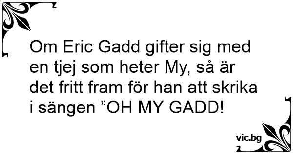 Om Eric Gadd gifter sig med en tjej som heter My, så är det fritt fram för han att skrika i sängen ”OH MY GADD!