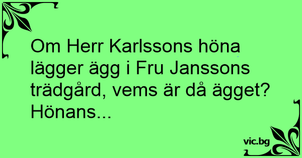 Om Herr Karlssons höna lägger ägg i Fru Janssons trädgård, vems är då ägget?