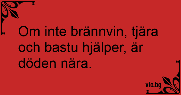 Om inte brännvin, tjära och bastu hjälper, är döden nära.