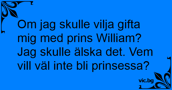 Om jag skulle vilja gifta mig med prins William? Jag skulle älska det. Vem vill väl inte bli prinsessa?
