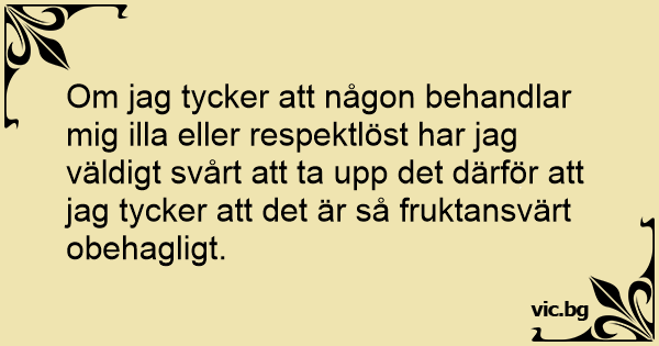 Om jag tycker att någon behandlar mig illa eller respektlöst har jag väldigt svårt att ta upp det därför att jag tycker att det är så fruktansvärt obehagligt.